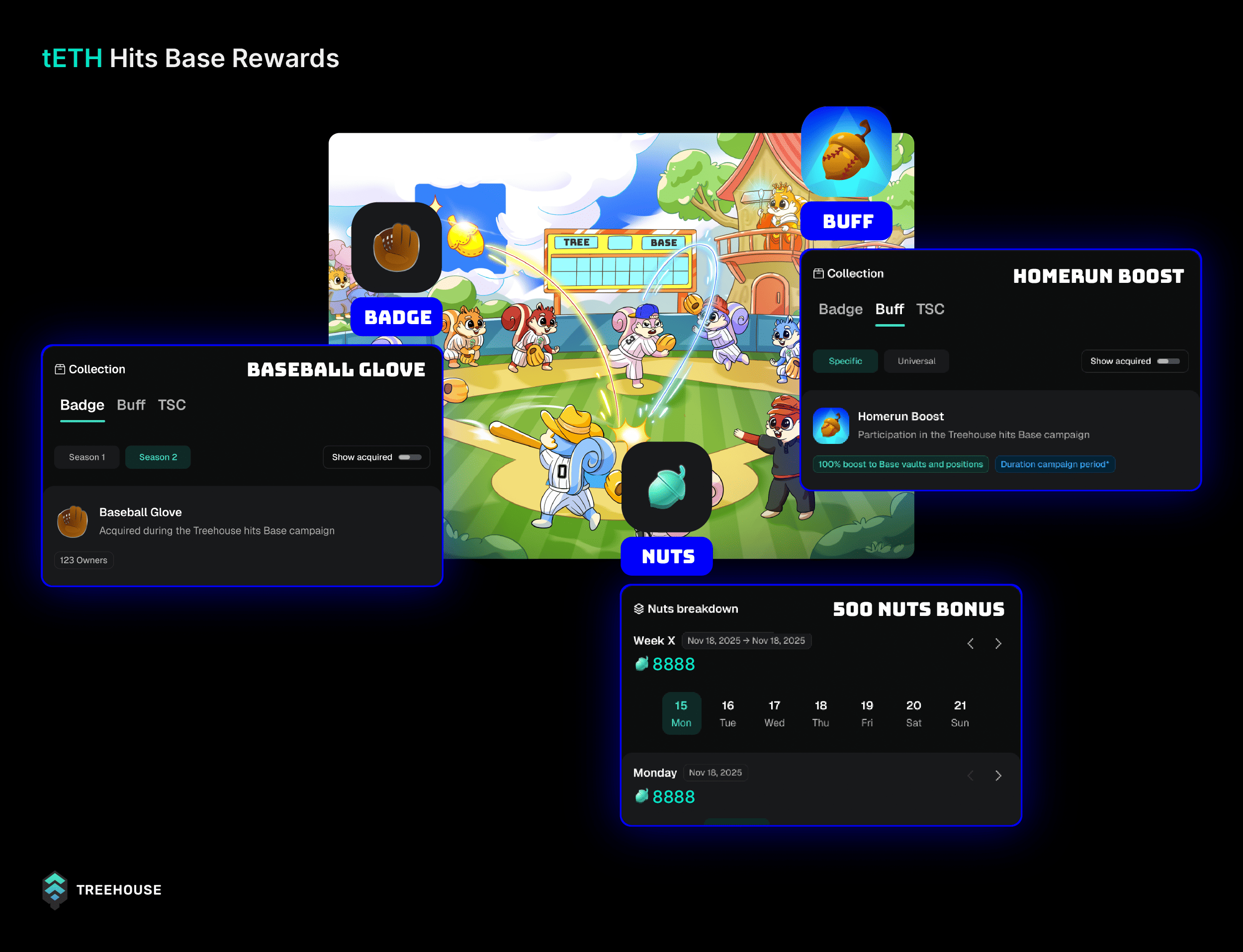 To celebrate this new expansion, Treehouse is launching tETH Hits Base, a 2-month long campaign that turns bridging and liquidity provision into a baseball-themed adventure.