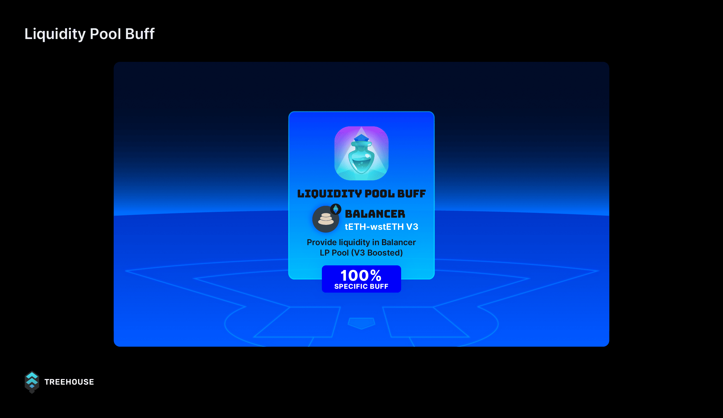 Provide liquidity to eligible tETH LP pools on Base, starting with the tETH-wstETH Balancer V3 LP Pool, to unlock an additional 100% Liquidity Pool Buff.
