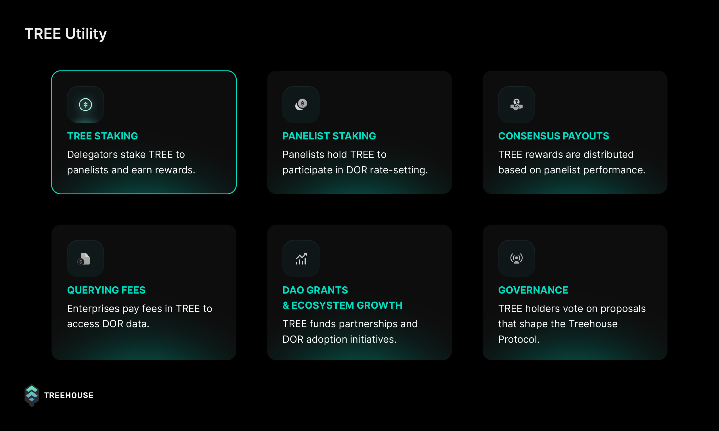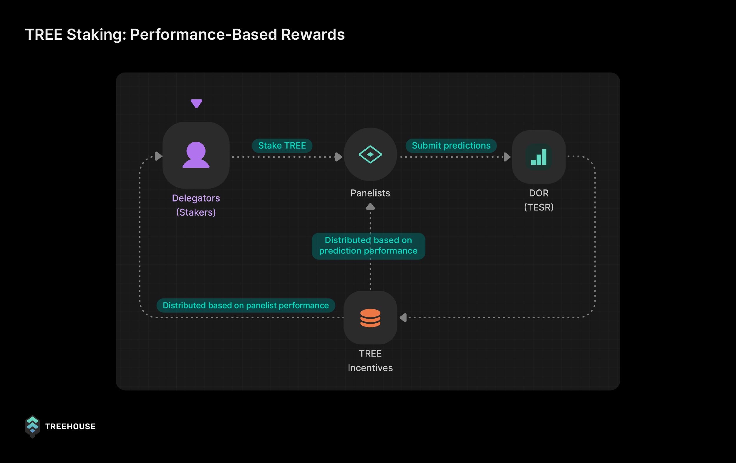 TREE is the engine of the Treehouse ecosystem, serving as the medium of exchange that incentivises the DOR network and its participants to predict rates accurately while enabling decentralized governance and driving fixed income growth across DeFi.