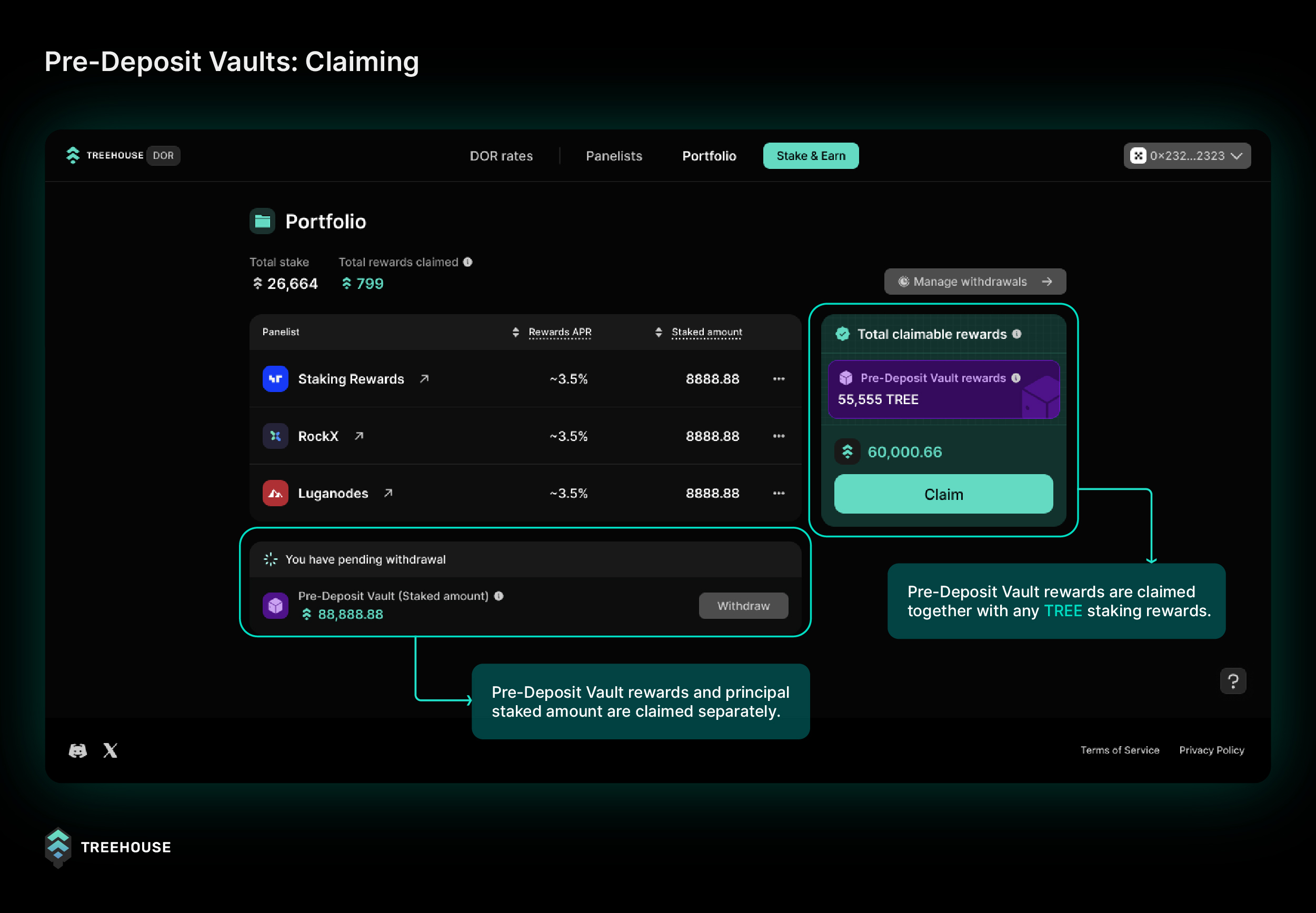 - Visit dor.treehouse.finance and select “Stake & Earn”