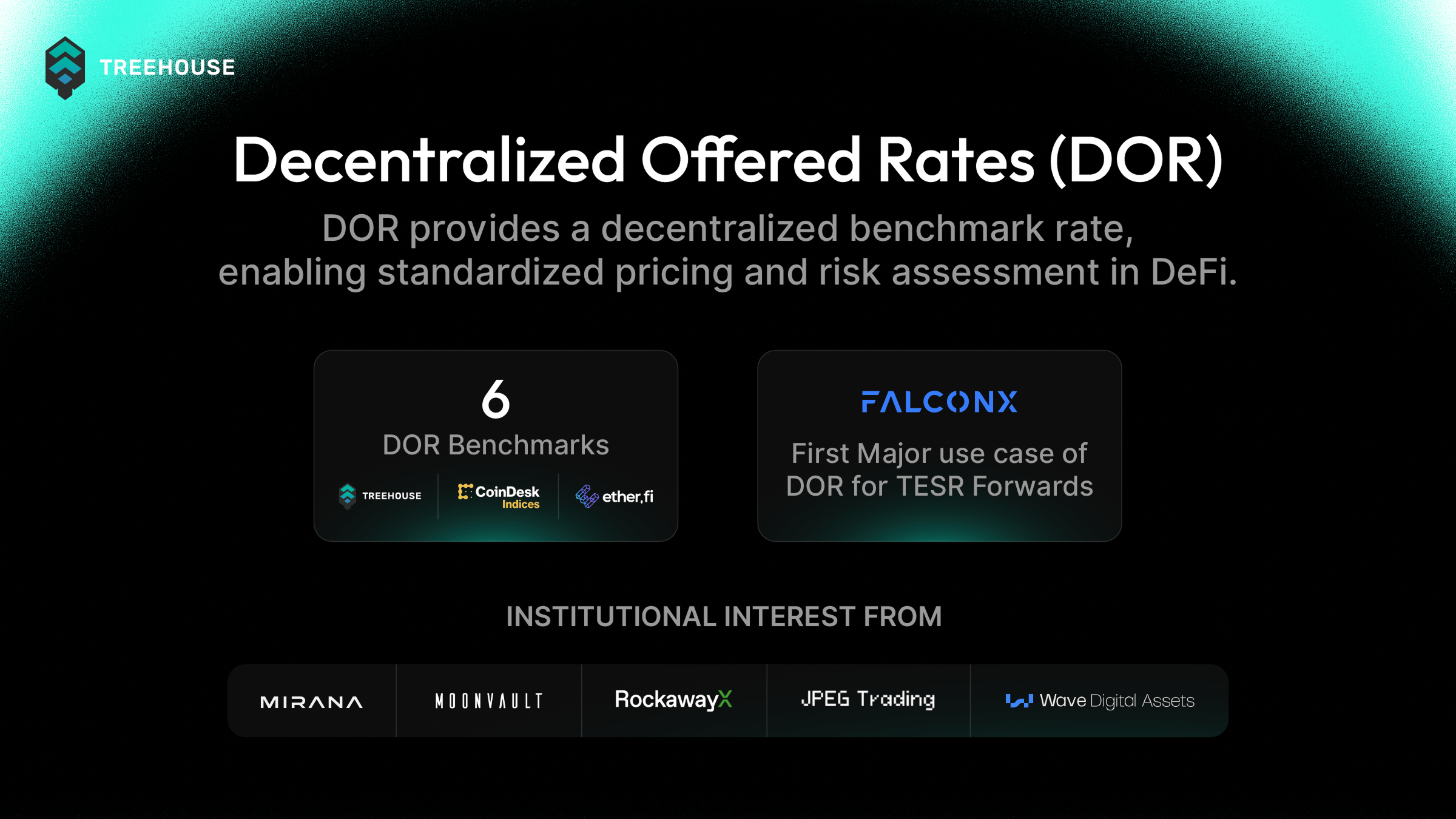 Another major milestone was the full mainnet launch of Decentralized Offered Rates (DOR) in July 2025, coinciding with the TREE token generation event. DOR, a consensus-driven mechanism inspired by traditional benchmarks like LIBOR/SOFR, establishes transparent, decentralized reference rates for on-chain yields. The flagship rate, Treehouse Ethereum Staking Rate (TESR), became a reliable daily benchmark for Ethereum staking yields, enabling structured products by unifying fragmented DeFi rates.