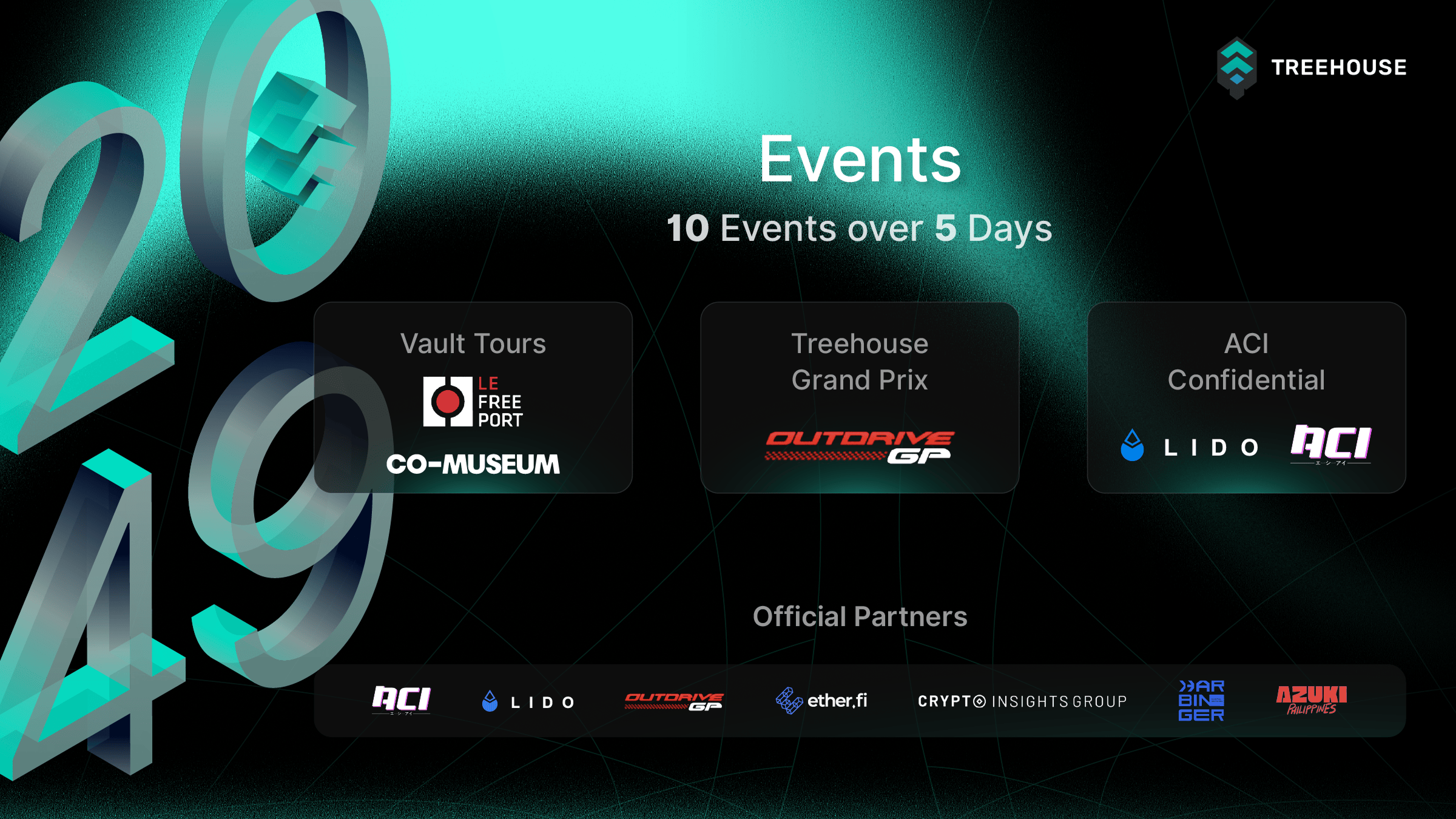 Our community engagement reached new heights this year through standout events during Token2049 such as Vault Tours and the Treehouse Grand Prix, organized with partners such as Le Freeport, Co-Museum and Outdrive. These connected us with thousands of attendees globally.